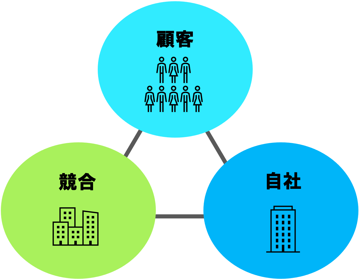 外部要因である顧客(市場)と競合、そこに内部要因である自社を照らし合わせ、自社の強みと弱みを把握しておく必要があるのです。