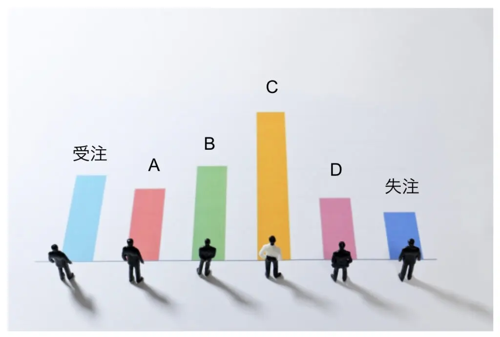 例えば、当時使っていた指標の内容は、「A」は今月確実に受注へ至るもの、「B」は努力すれば今月受注確定するもの、「C」は今のところは見込みは低いが、顧客の都合で受注確定するかもしれないもの、「D」は予算取りや相見積などであり、完全に顧客都合であるものなどです。